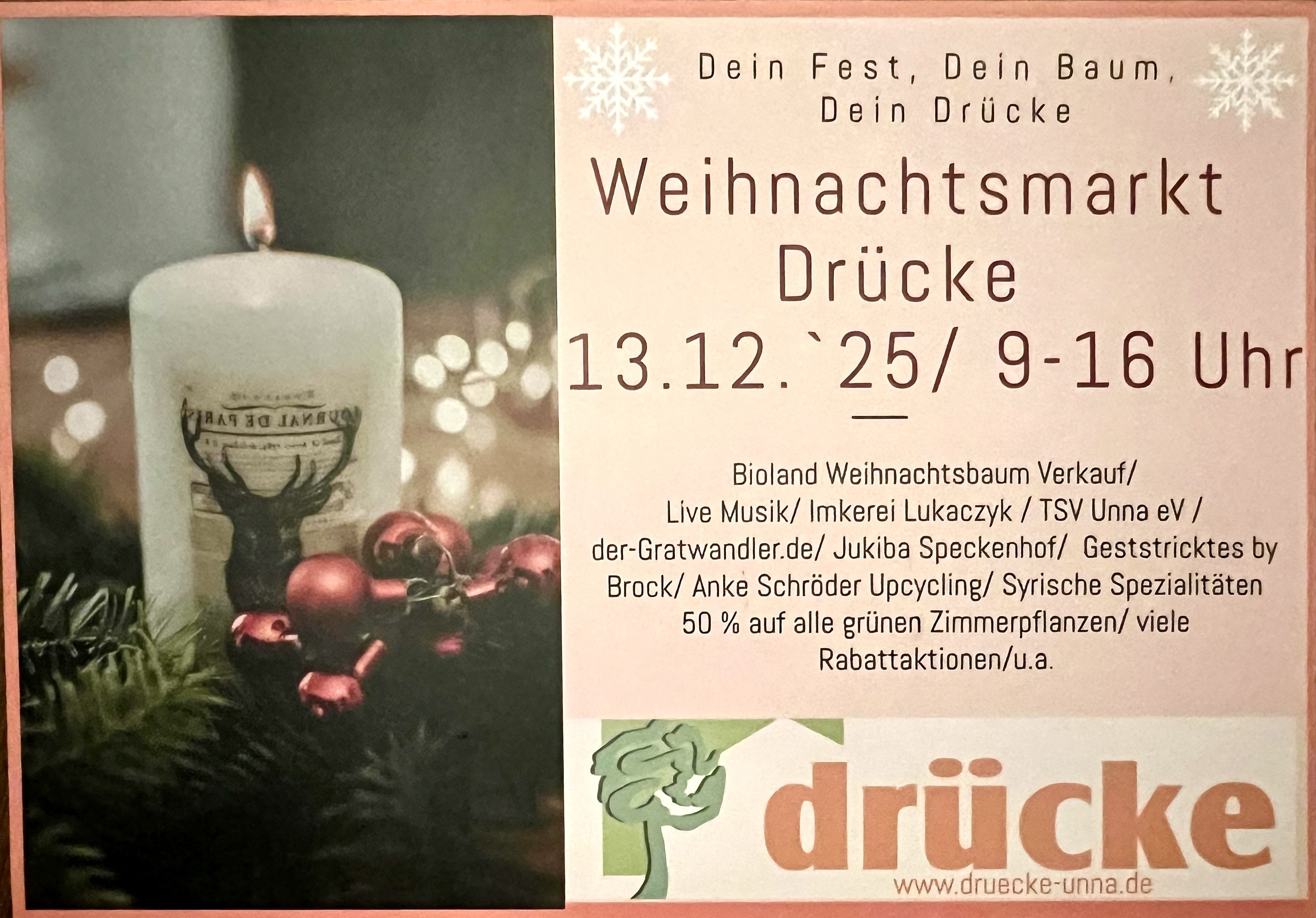 Wie jedes Jahr findet auf unserem Gelände der Bioland Weihnachtsbaumverkauf statt. Rund um den Verkauf veranstalten wir einen kleinen Weihnachtsmarkt bei dem sich gerne noch Aussteller/Innen mit ihren Produkten unter 02303 61717, anmelden können.